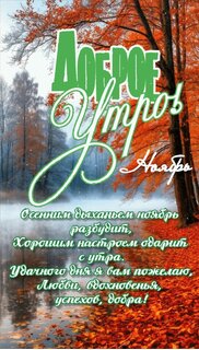 Ноябрь. Доброе утро! Осенним дыханием ноябрь разбудит, Хорошим настроем одарит с утра. Удачного дня я вам пожелаю, любви, вдохновенья, успехов, добра!