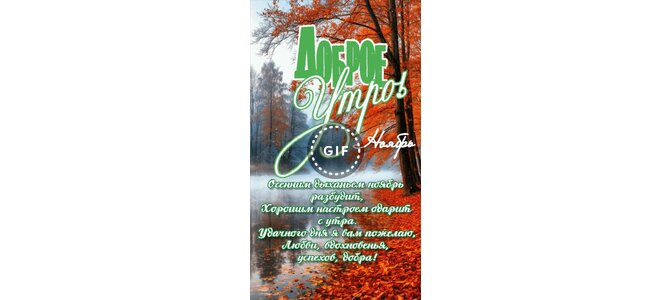Анимированная открытка "Ноябрь. Доброе утро! Осенним дыханием ноябрь разбудит, Хорошим настроем одарит с утра. Удачного дня"