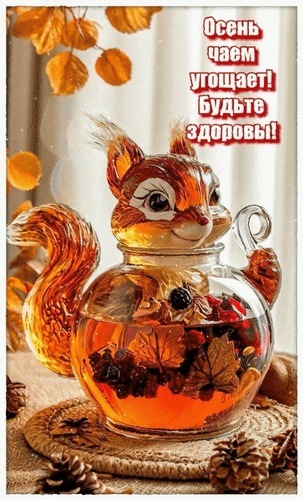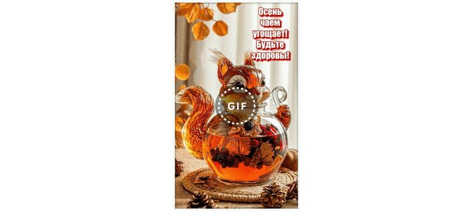 Анимированная открытка "Осень чаем угощает! Будьте здоровы!"