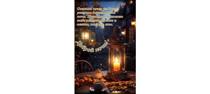 Открытка "Осенний вечер уходит, уступая дорогу тихой ночи. Пусть она принесёт тебе умиротворение и легкие..."