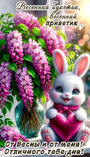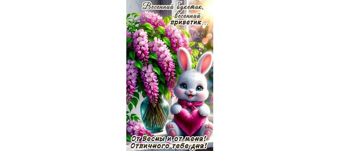 Теги:от меня приветик, весенний букетик, зайка, сердечко, пушистик, цветы, зима, снег, милота, пожелания на каждый день, приветик