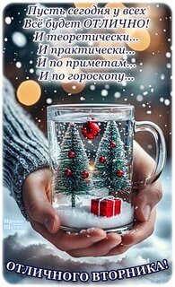 Пусть сегодня у всех всё будет отлично! И теоретически, и практически, и по приметам, и по гороскопу. Отличного вторника!