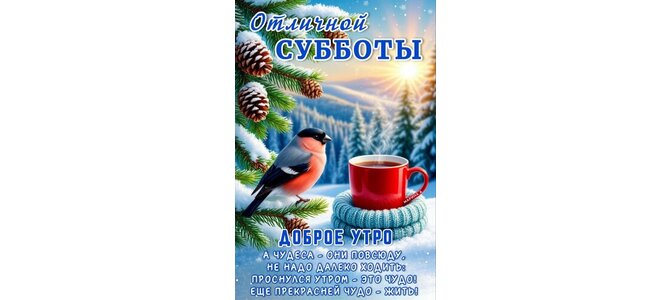 Открытка "ОТЛИЧНОЙ СУББОТЫ! А ЧУДЕСА - ОНИ ПОВСЮДУ, НЕ НАДО ДАЛЕКО ХОДИТЬ: ПРОСНУЛСЯ УТРОМ - ЭТО ЧУДО! ЕЩЕ ПРЕ"