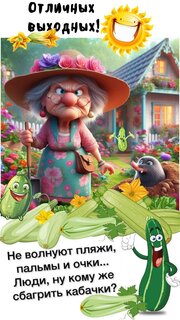 Отличных выходных! Не волнуют пляжи, пальмы и очки... Люди, ну кому же сбагрить кабачки?