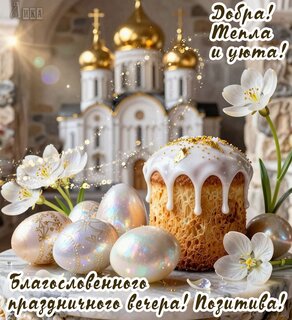 Теги:пасха вечер, пасха, кулич, яйца, цветы, церковь, собор, красивая картинка, благословенного вечера, добра, тепла, уюта