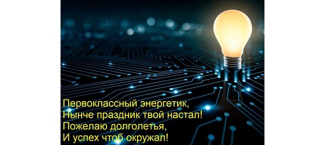 Первоклассный энергетик, нынче праздник твой настал! Пожелаю долголетья, и успех чтоб окружал!