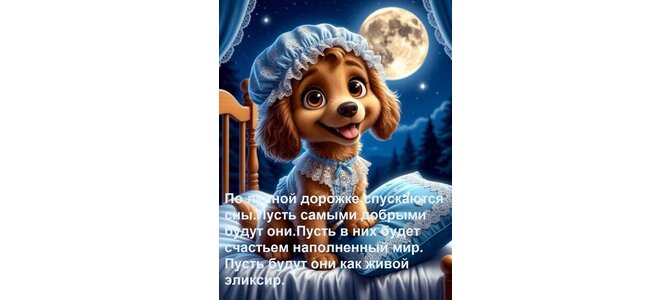 Теги:по лунной дорожке спускаются сны пусть самыми добрыми будут они пусть в них будет счастьем наполненный мир пусть будут они как живой эликсир