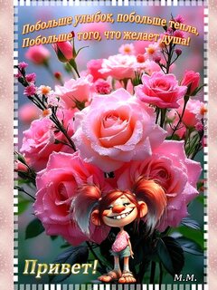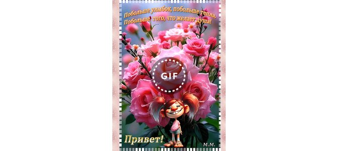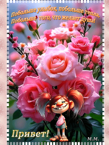 Теги:привет, утро, день, вечер, для всех, красивые розы, улыбка, красивая окрытка, анимация, максимчук м г