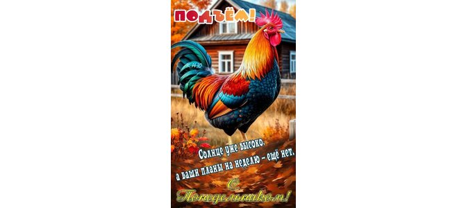 Открытка "Подъём! Солнце уже высоко, а ваши планы на неделю - ещё нет. С Понедельником."