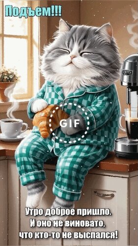 Анимированная открытка "Подъём!!! Утро доброе пришло. И оно не виновато, что кто-то не выспался!"