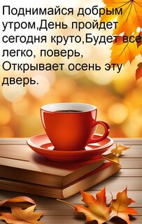Теги:поднимайся добрым утром, день пройдет сегодня круто, будет все легко, поверь, открывает осень эту дверь