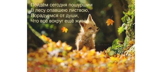 Открытка "Пойдём сегодня пошуршим В лесу опавшею листвою, Порадуемся от души, Что всё вокруг ещё живое."