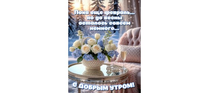 Открытка "Пока еще февраль, но до весны осталось совсем немного... Доброе утро!"