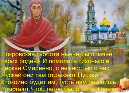 Открытка "Покровская суббота нынче, ты помяни своих родных и помолись тихонько в церкви. Смиренно, с нежностью..."