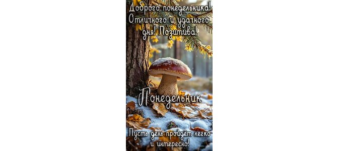 Теги:понедельник, дни недели, осень, гриб, поздняя осень, позитив, день, удачного дня