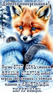 Теги:понедельник, лиса, снег, зима, лес, варежки, лисенок, удачного дня, добрый день