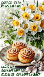 Теги:понедельник, дни недели, плюшки, булочки, цветы, букет цветов, утро, вдохновения, здоровья, солнечных лучей