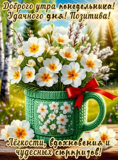 Теги:понедельник, дни недели, цветы, мимоза, весна, лето, чашка цветов, позитива, добра, удачи, вдохновения, легкости, чудесных сюрпризов