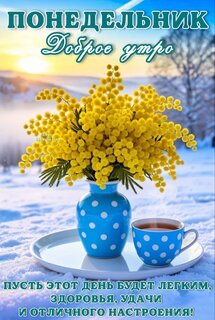 Открытка "ПОНЕДЕЛЬНИК. ДОБРОЕ УТРО. ПУСТЬ ЭТОТ ДЕНЬ БУДЕТ ЛЕГКИМ, ЗДОРОВЬЯ, УДАЧИ И ОТЛИЧНОГО НАСТРОЕНИЯ!"