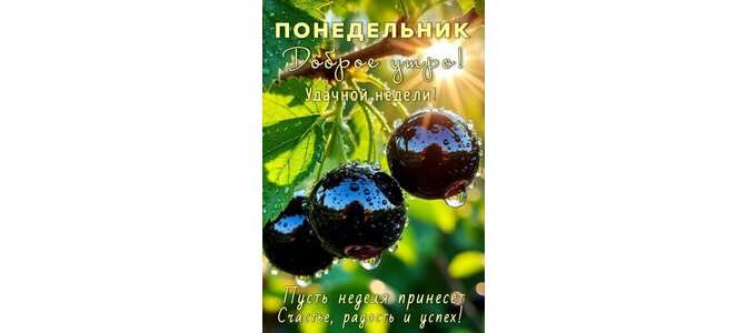 Открытка "Понедельник. Доброе УТРО! Удачной Недели! Пусть Неделя Принесет Счастье, Радость И Успех!"