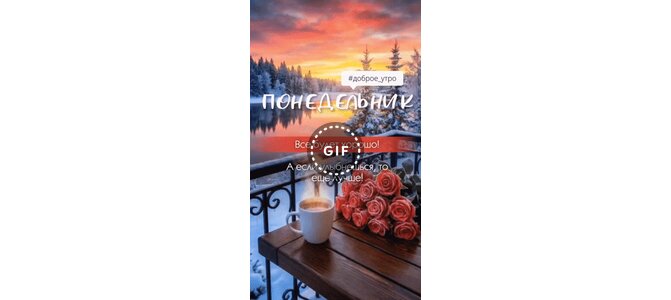 Анимированная открытка "Понедельник. Доброе утро. Всё будет хорошо! А если улыбнешься, то еще лучше!"