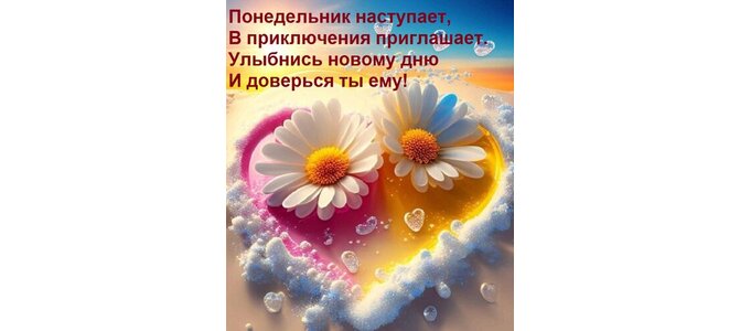 Открытка "Понедельник наступает, В приключения приглашает. Улыбнись новому дню И доверься ты ему!"