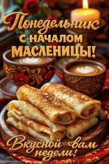 Анимированная открытка "Понедельник. С началом Масленицы! Вкусной вам недели!"