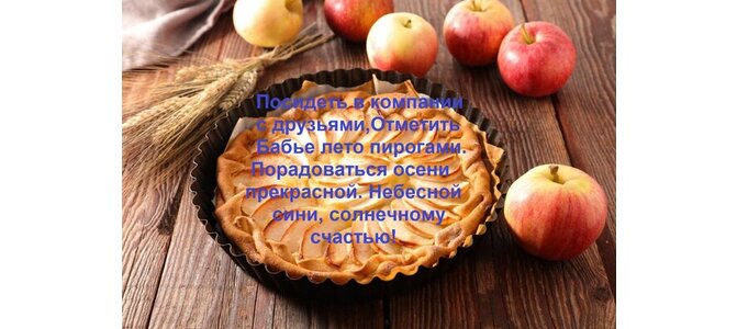 Теги:посидеть в компании с друзьями, отметить, бабье, лето, пирогами, порадоваться, осени, прекрасной, небесной, сини, солнечному счастью