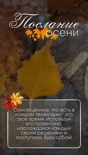 Послание осени. Самое ценное, что у тебя есть в каждом твоём дне - это твоё время. Используй его правильно, наслаждайся каждым своим решением и поступком. Будь собой!
