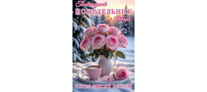 Открытка "ПОСЛЕДНИЙ ПОНЕДЕЛЬНИК ЧЕРЕЗ МЕСЯЦ ВЕСНА!"