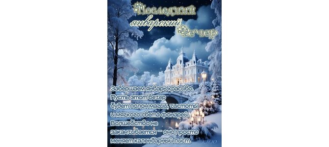 Открытка "Последний январский вечер.Завершаем январь красиво. Пусть этот вечер будет полон магии, чистоты"