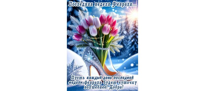 Теги:последняя неделя февраля, зима, снег, туфелька, тюльпаны, красивая картинка, волшебства, пожелания на каждый день