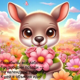 Открытка "Позабыты все заботы, трудобудни позади — на календаре суббота, к ней в объятия иди!"