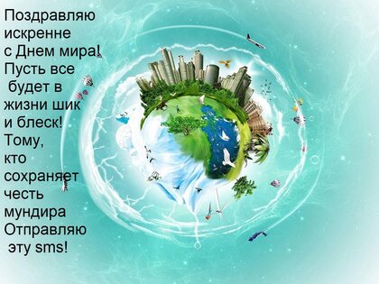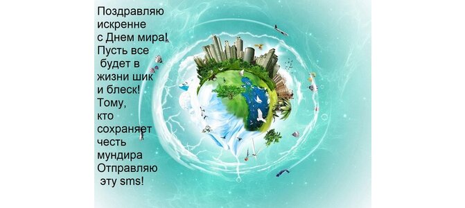 Открытка "Поздравляю искренне с Днем мира! Пусть все будет в жизни шик и блеск! Тому, кто сохраняет честь мунд"