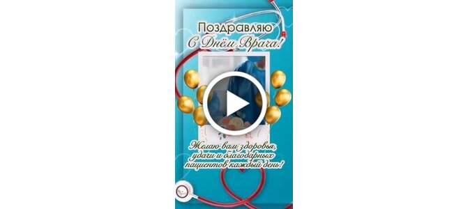 Видеооткрытка "Поздравляю с Днём Врача! Желаю вам здоровья, удачи и благодарных пациентов каждый день!"