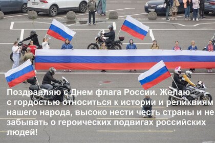 Открытка "Поздравляю с Днем флага России. Желаю с гордостью относиться к истории и реликвиям нашего народа, вы"