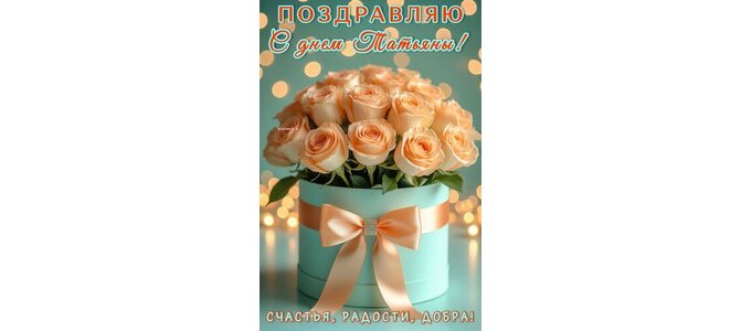 Открытка "ПОЗДРАВЛЯЮ С ДНЕМ ТАТЬЯНЫ! СЧАСТЬЯ, РАДОСТИ, ДОБРА!"