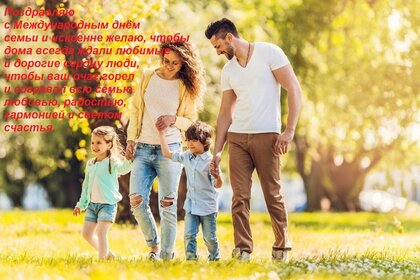 Здравляю с Международным днём семьи и истренне желаю, чтобы дома всегда дали любимые и дорогие сердцу люди, чтобы ваш очаг горел и согревал в тосемью любовью, работаю, армонией и счетом счастья.