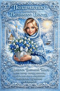 Поздравляю с началом Великого Поста. Начался Великий Пост, всех хочу поздравить, пусть же он в сердцах людских лучшее оставит!