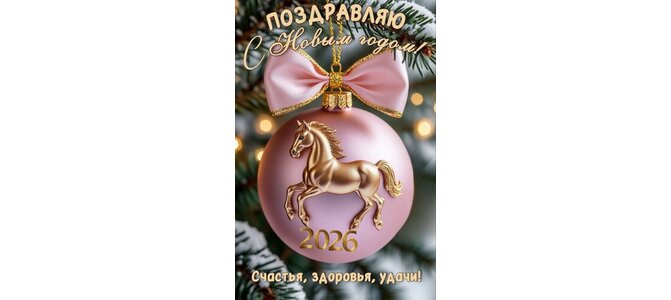 Открытка "ПОЗДРАВЛЯЮ С НОВЫМ ГОДОМ! СЧАСТЬЯ, ЗДОРОВЬЯ, УДАЧИ!"