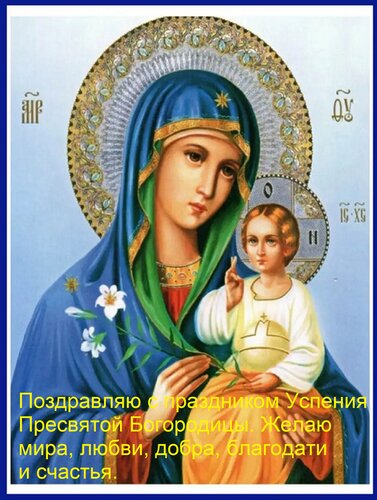 Теги:поздравляю, праздником, успения, пресвятой, богородицы, желаю, мира, любви, добра, благодати и счастья