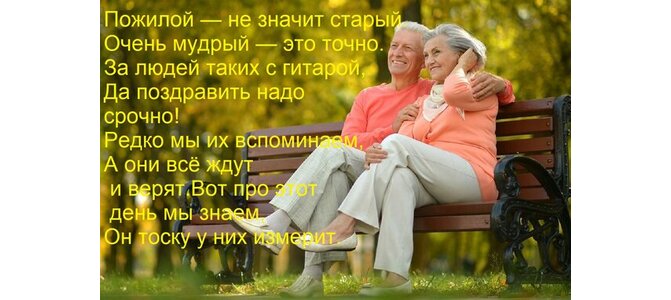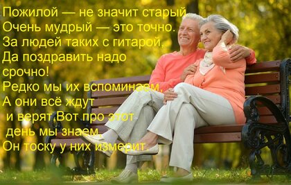 Открытка "Пожилой — не значит старый. Очень мудрый — это точно. За людей таких с гитарой, да поздравить надо срочно."