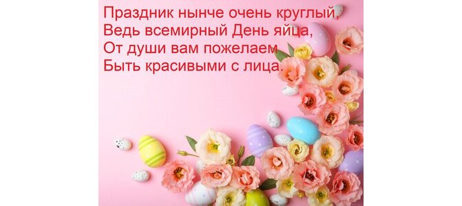Открытка "Праздник нынче очень круглый, Ведь всемирный День яйца, От души вам пожелаем Быть красивыми с лица."
