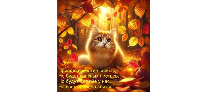 Открытка "Пришло известие сейчас, Не будет красных листьев, Но будут жёлтые у нас, На всех природа злится!"