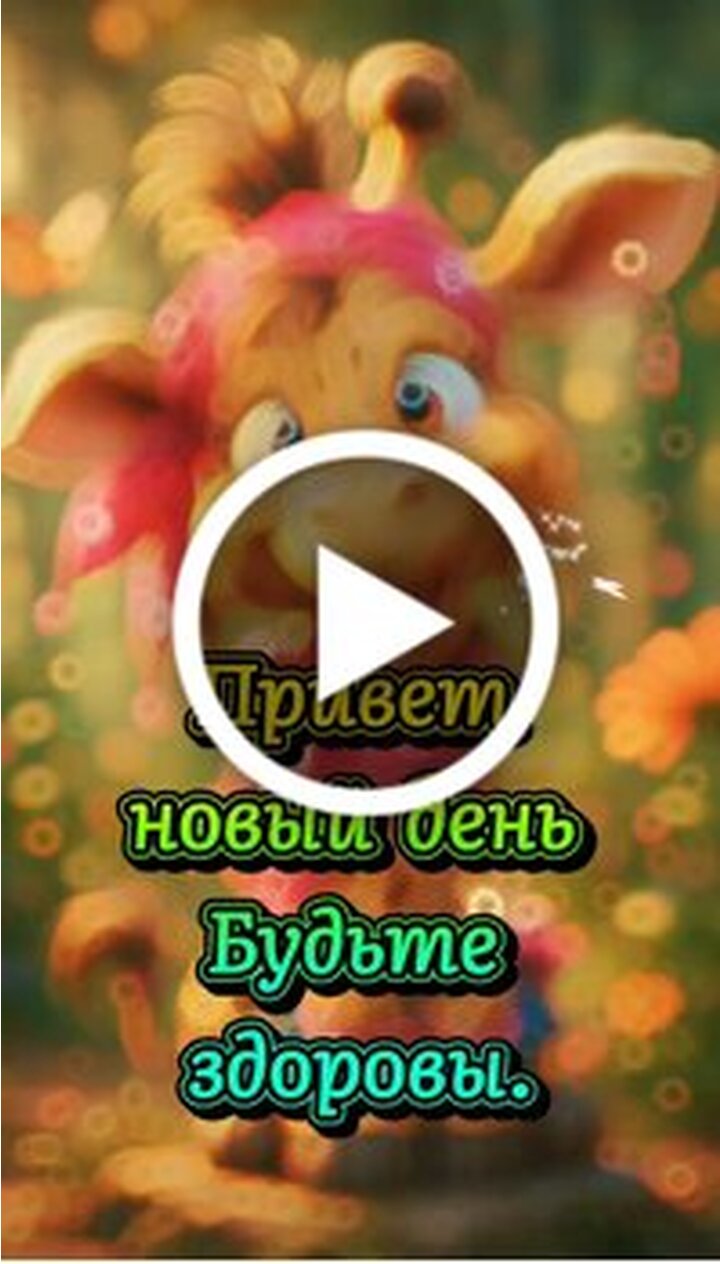 Это короткое позитивное видео представляет собой анимированный приветственный ролик с милым персонажем жирафа в розовой бандане. На фоне сказочного леса с яркими цветами и порхающими бабочками на экране появляется текст Привет новый день Будьте здоровы. Видео наполнено теплой атмосферой и предназначено для того чтобы поднять настроение и пожелать зрителям доброго утра и крепкого здоровья. Идеально подходит для ежедневных пожеланий в социальных сетях.