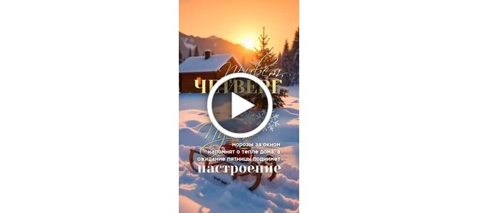 Видеооткрытка "Привет, четверг! Пусть морозы за окном напомнят о тепле дома, а ожидание пятницы поднимет настроение"