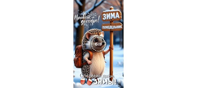 Анимированная открытка "Привет, Декабрь! Зима. Понедельник. С первым днём зимы!"