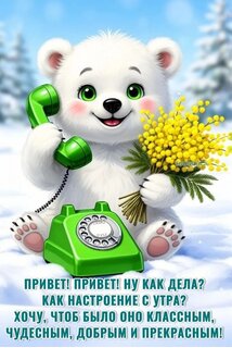 Открытка "ПРИВЕТ! ПРИВЕТ! НУ КАК ДЕЛА? КАК НАСТРОЕНИЕ С УТРА? ХОЧУ, ЧТОБ БЫЛО ОНО КЛАССНЫМ, ЧУДЕСНЫМ, ДОБРЫМ И"