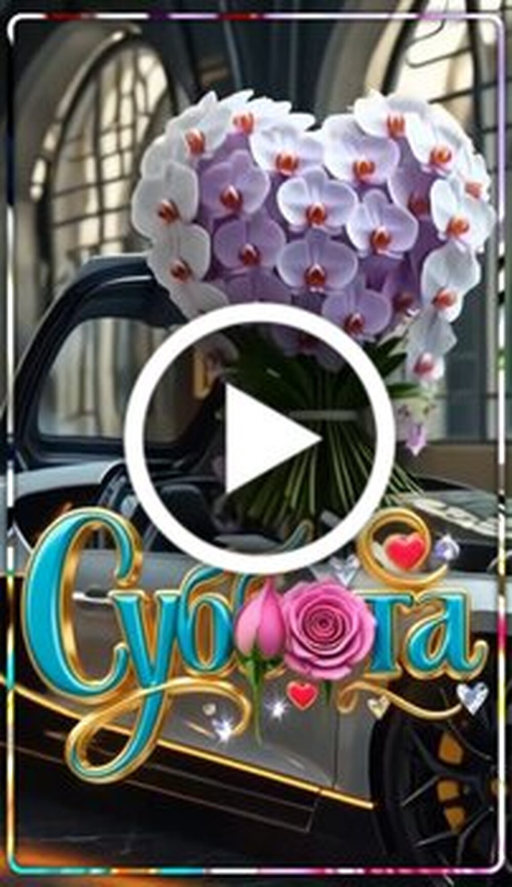 Красивое эстетичное видео с роскошным спортивным автомобилем и великолепными цветочными композициями. Сюжет представляет собой смену кадров с элегантным суперкаром на фоне архитектурных сводов, который дополняется пышными букетами роз, орхидей, калл и тюльпанов, собранными в форме сердец. Видео наполнено добрыми пожеланиями на русском языке, включая фразы суббота, привет новый день, прекрасного дня, счастья и радости, мира и добра. Визуальный ряд сочетает в себе мощь современных технологий и нежность природы, создавая праздничное и позитивное настроение для каждого зрителя.