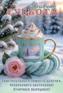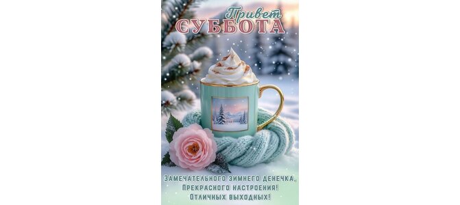 Открытка "Привет суббота. Замечательного зимнего денечка, прекрасного настроения! Отличных выходных!"